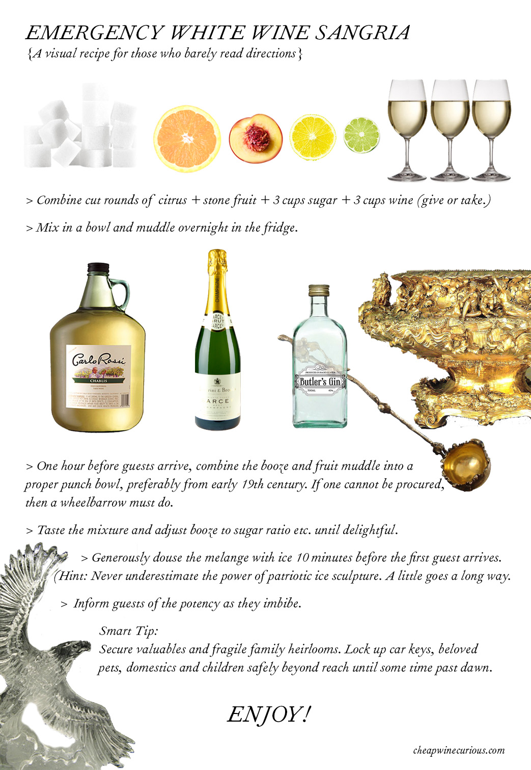 I threw a party back in the 90’s and a visiting colleague from Spain, Enrique, who we just called “the Spaniard” (I recall Russell Crowe was starring in Gladiator at the time,) made a White Sangria of legend. To this day, family, friends and every outer rung of acquaintance still inquire about the recipe. No kidding, I received a request for it last week on FB. My Twitter friend @RoseCondrieu commented on a fruitless search for the recipe today.